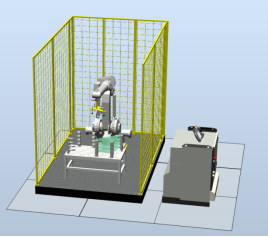 工业机器人打磨工作站主要由 IRB1410工业机器人系统、砂带机、上料工作台、PLC 可视化控制柜、安全护栏等组成。用户可以示教机器人完成抛光作业,抛光工件主要为五金零件。