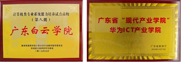 凭借在产教融合领域的突出成果,广东白云学院华为ICT学院先后获得多项权威认可:获评教育部 “计算机系统能力培养” 试点单位、广东省教育厅现代产业学院,以及中国软件行业学会“国产软件进课堂”教学中心,进一步彰显了其在ICT人才培养领域的专业实力与行业影响力。